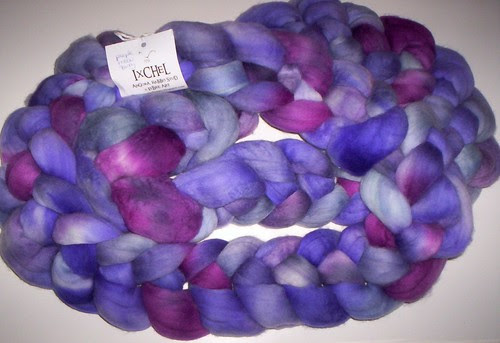 Not purple but very much a nice seabreeze and ocean kind of range....lol I love how this yarn works up! it is so nice and fluffy but has the pearliness of the cashmere and you only need 50grams for a lace shawl (pattern available for free!) and the Bunny wave tops only need about 100 grams! Amazingly yummy!